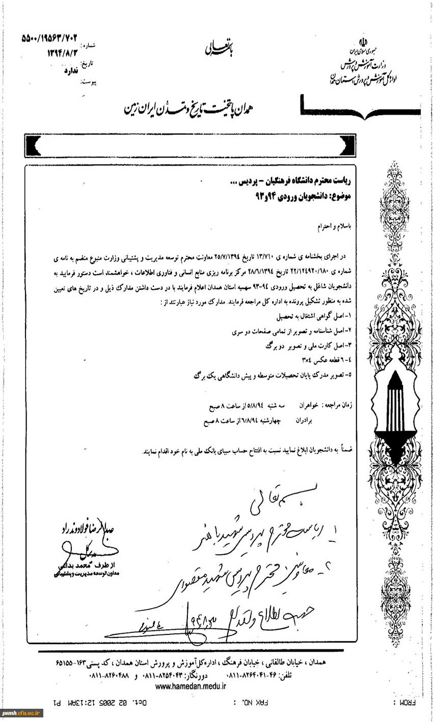 اطلاعیه تکمیل پرونده استخدامی دانشجویان ورودی 94و 93