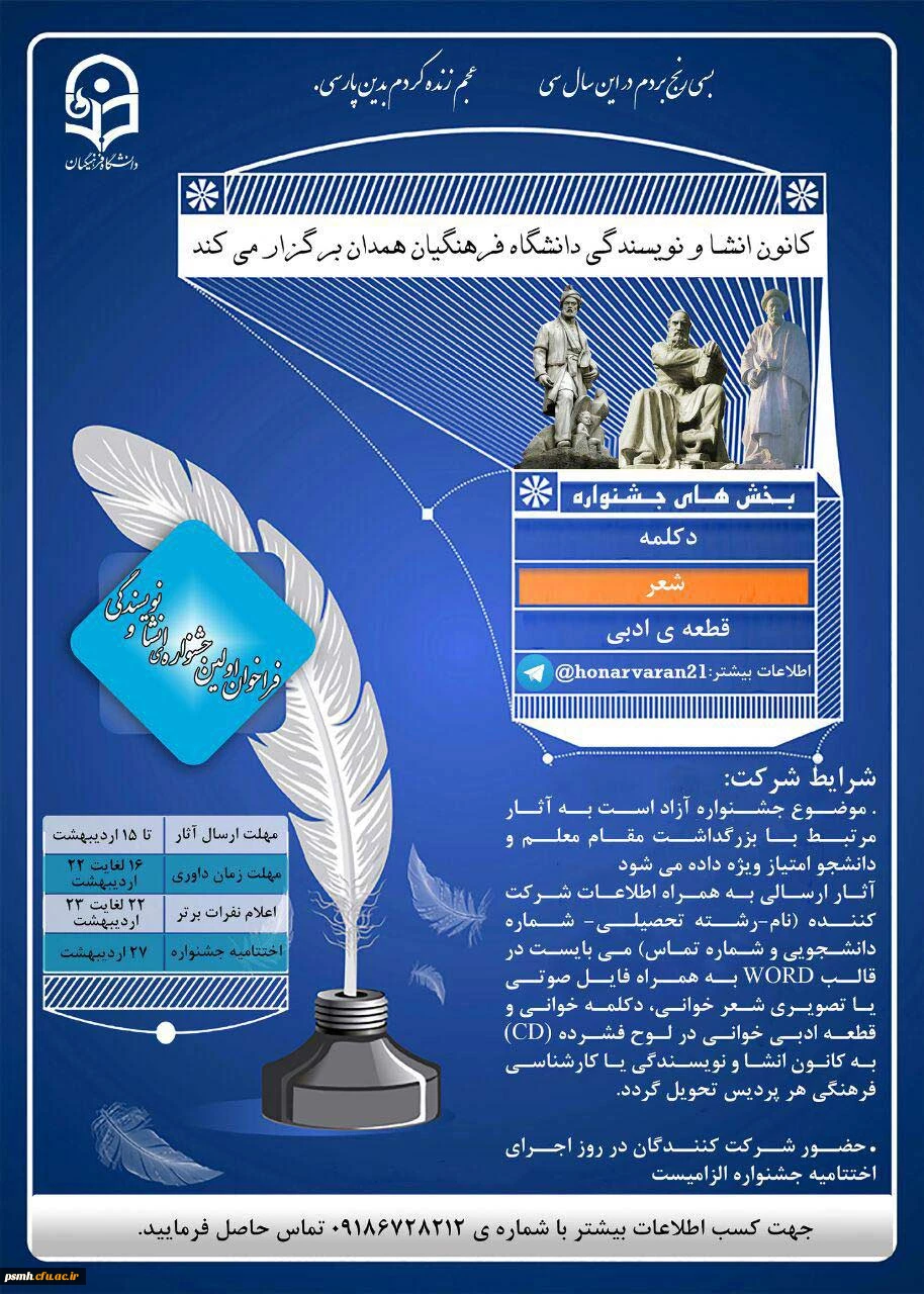 فراخوان اولین جشنواره ی کانون های دانشجویی انشاو نویسندگی دانشگاه فرهنگیان همدان