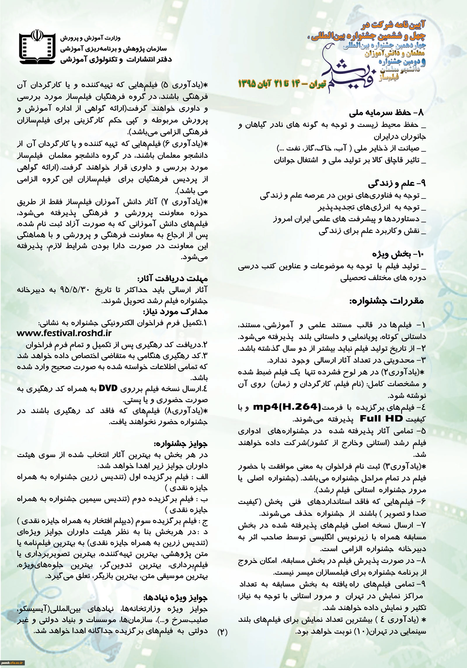 آیین نامه شرکت در چهل و ششمین جشنواره بین المللی