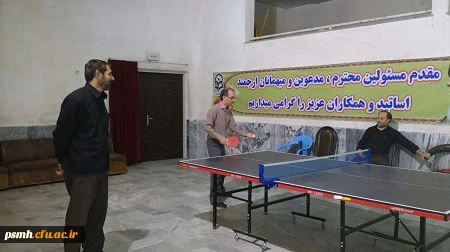 برگزاری یک دوره مسابقه ی پینگ پنگ بین استادان وهمکاران محترم پردیس شهید مقصودی به مناسبت گرامی داشت هفته دفاع مقدس