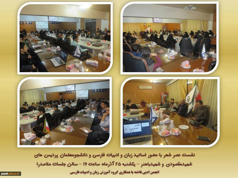 نشست عصر شعر باحضور اساتید زبان و ادبیات فارسی و دانشجومعلمان پردیس های شهیدمقصودی و شهیدباهنر