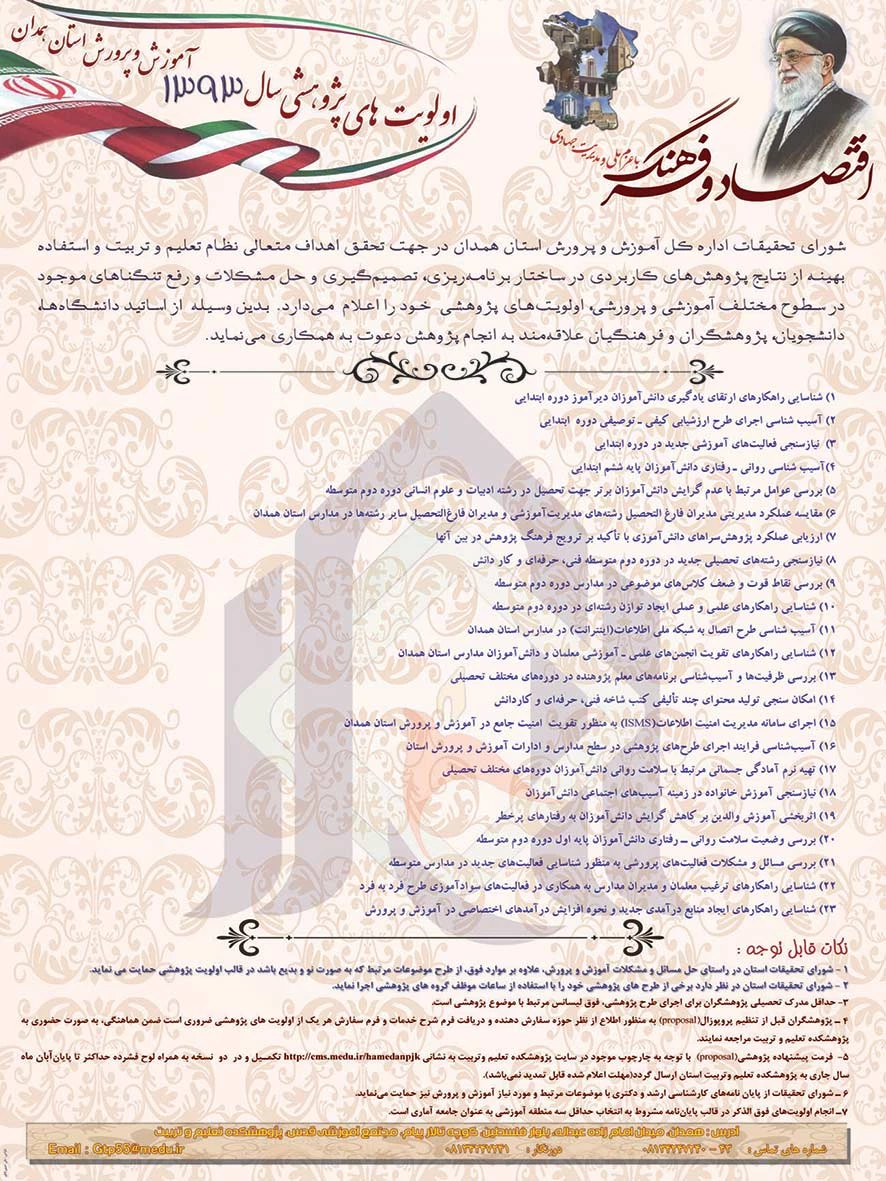 اولویتهای پژوهشی سال 1393 آموزش و پرورش استان همدان