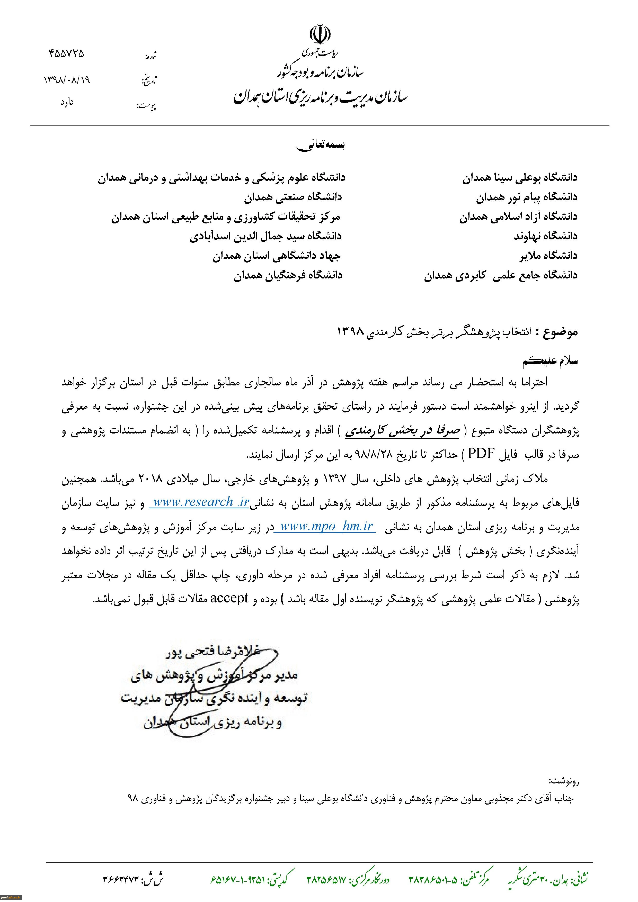 امتیاز دهید : موضوع: توضیحات لازم در خصوص نحوه انتخاب پژوهشگر برتر در حوزه کارمندی 2 شنبه 25 آبان 1398 ساعت 8:44