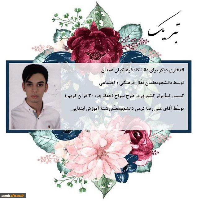 امتیاز دهید : توسط دو نفر از دانشجو معلمان فعال فرهنگی پردیس شهید مقصودی همدان 2 دوشنبه 2 دی 1398 ساعت 12:48