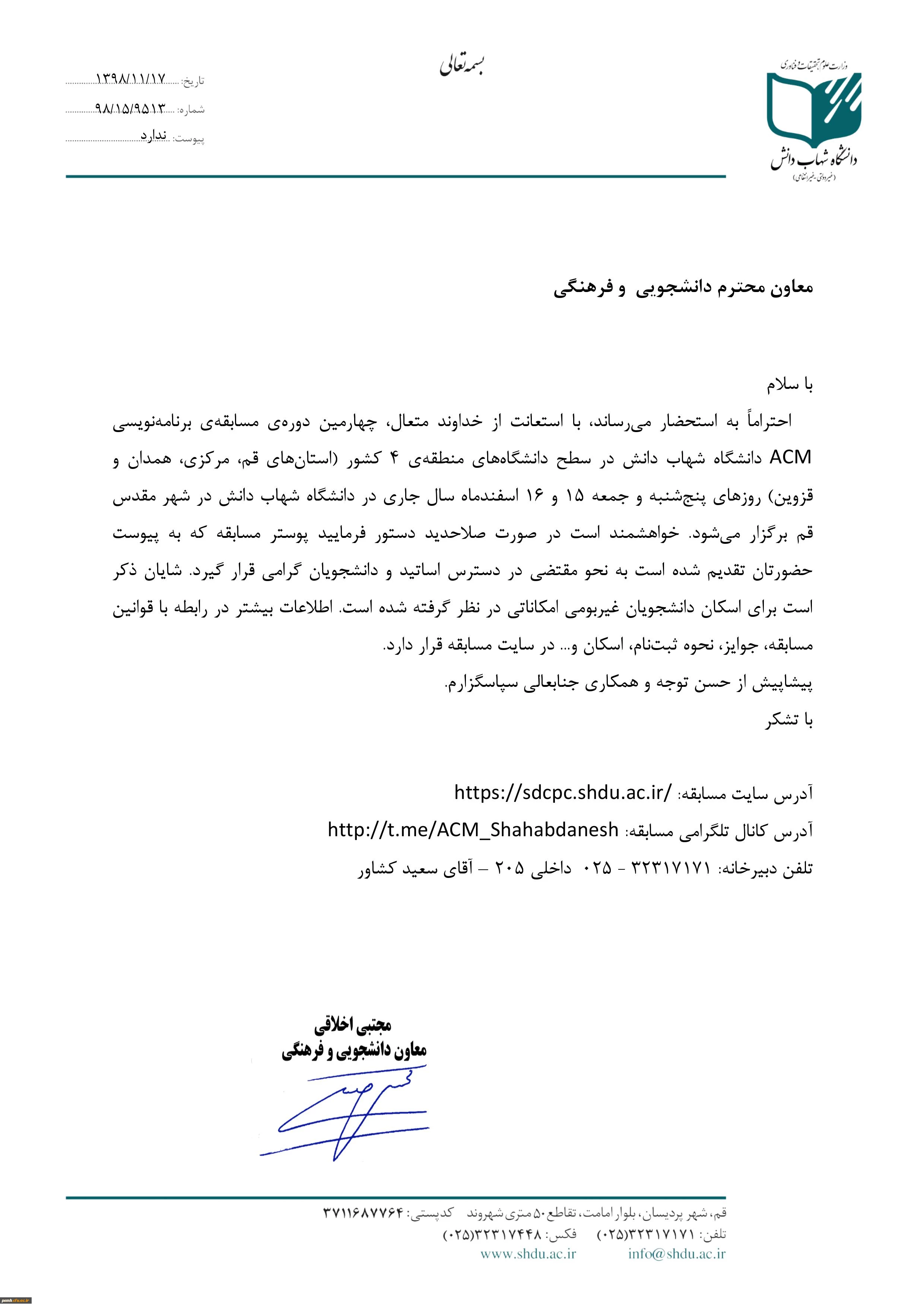 چهارمین دوره مسابقه برنامه نویسی acm دانشگاه شهاب دانش در سطح دانشگاه های منطقه 4 کشور 3