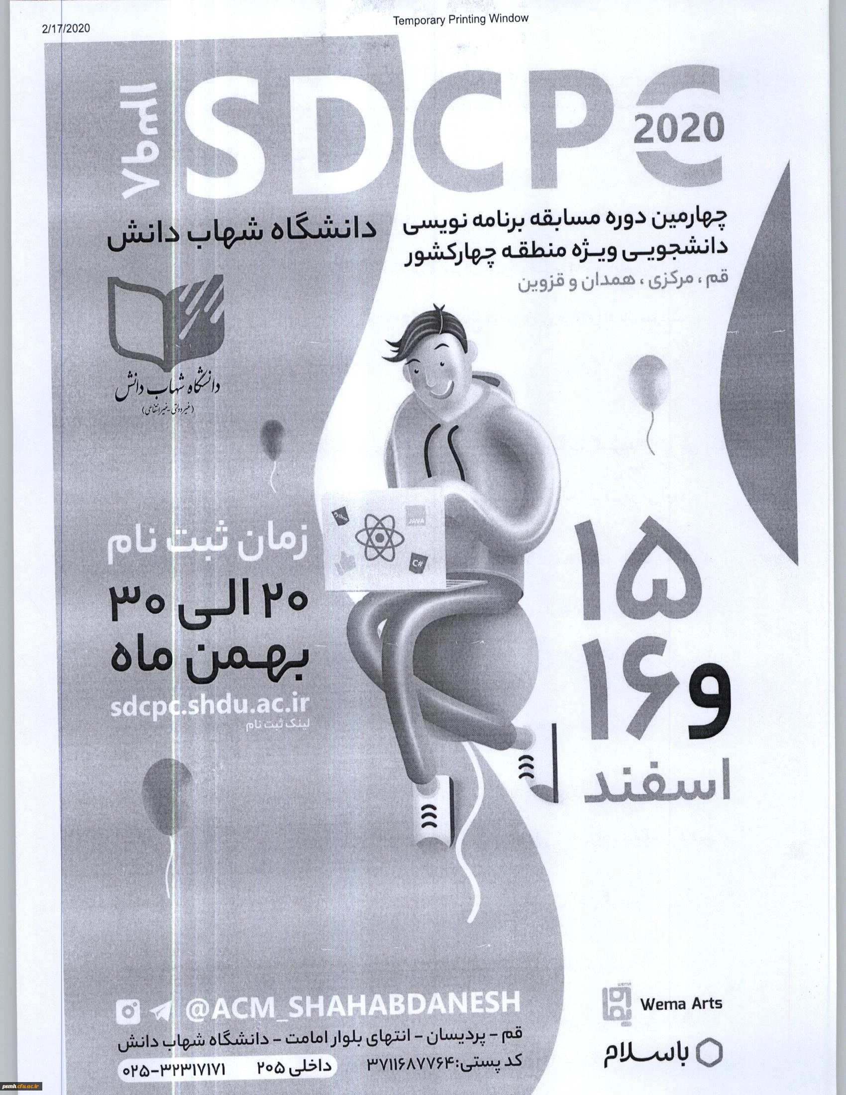 امتیاز دهید : پوستر چهارمین دوره مسابقه برنامه نویسی دانشجویی ویژه منطقه چهار کشور سهشنبه 29 بهمن 1398 ساعت 9:48