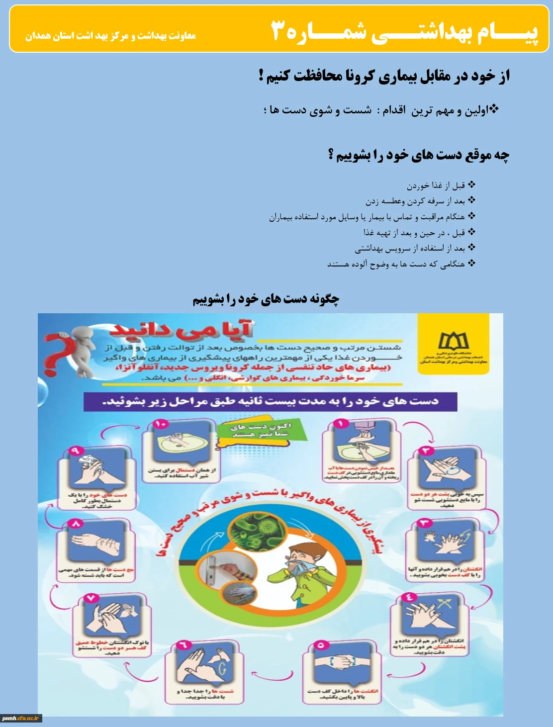 انتشار پیام های بهداشتی با مضمون (کرونا ویروس) بروی پورتال دانشگاه علوم پزشکی استان همدان 3