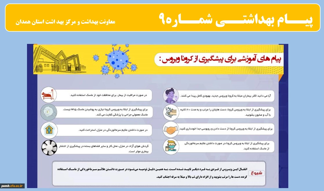 انتشار پیام های بهداشتی با مضمون (کرونا ویروس) بروی پورتال دانشگاه علوم پزشکی استان همدان 5