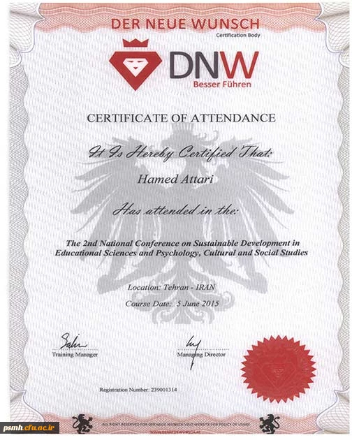 اخذگواهی نامه ی بین المللی آکادمی علمی der neue wunsch ازکشور اتریش توسط آقای حامد عطاری