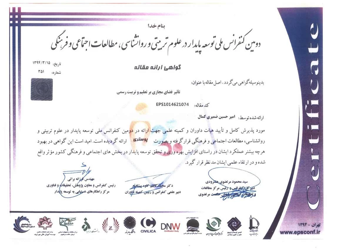 انجام طرح پژوهشی «تأثیر فضای مجازی بر تعلیم و تربیت رسمی» توسط امیر حسین ضمیری کمال