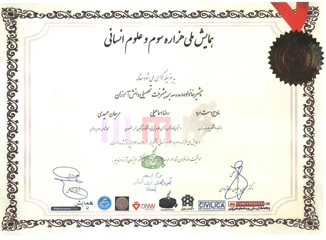 انجام طرح پژوهشی توسط دانشجو معلم آقای رضا اسماعیلی