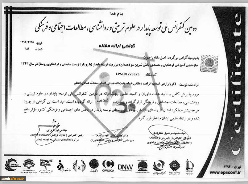 گواهینامه های ارایه ی مقاله ی دانشجو ذکریا زارعی اسدی
